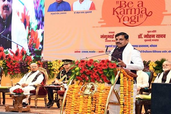 मुख्यमंत्री डॉ. यादव ने कहा कि कर्मयोगी कार्य शाला का आयोजन अद्भुत है। कार्यक्रम का भाव और भावना अभूतपूर्व है। सौभाग्य की बात है कि 5 हजार वर्ष पूर्व प्रदेश की धरती से शिक्षित कर्मयोगी के कर्मवाद का पुनर्जागरण प्रदेश से ही हो रहा है। उन्होंने कहा कि हमारे प्रधानमंत्री श्री नरेन्द्र मोदी कर्मयोगी ऋषि परंपरा का अक्षरक्ष: प्रतिरूप है। प्रधानमंत्री जी के मनोभावों के आधार पर सुशासन के दृष्टिगत होने वाले सभी सुशासन के प्रयोगों को अंतिम कड़ी तक पहुँचाने का प्रयास मिशन कर्मयोगी है। निष्काम भाव, अहंकार से मुक्त बहुजन हिताय, बहुजन सुखाय के लिए निरंतर कार्य करना ही कर्मयोग है। उन्होंने कहा कि भारतीय संस्कृति की विशालता अद्भुत है, जो अतिरंजित बातों को भी सुन लेती है। सही, अच्छी बातों को सद्भावना के साथ लेकर आगे चलती है। इसी लिए आज दुनिया भारतीय दर्शन से प्रेरणा प्राप्त कर रही है। मुख्यमंत्री डॉ. यादव ने कहा कि भारतीय संस्कृति का दायरा असीमित है, जिसमें सारे ब्रह्मांड के कल्याण का चिंतन है। भारत के तक्षशिला, नालंदा और विक्रमशिला विश्वविद्यालय जैसे ज्ञान के केंद्र सम्पूर्ण मानवता के लिए कार्य करते थे। भारत ने कभी दूसरे देशों पर आक्रमण नहीं किया।