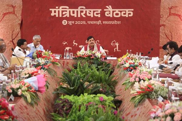 मुख्यमंत्री डॉ. यादव की अध्यक्षता में मंत्रि-परिषद की बैठक वंदे मातरम के गान के साथ प्रारंभ हुई। बैठक के दौरान मंत्रि-परिषद के सदस्यों को सतपुड़ा अंचल के गौरवशाली अतीत, सभ्यता, समृद्ध संस्कृति और राजा भभूत सिंह पर केंद्रित फिल्म दिखाई गई। लोक निर्माण मंत्री और नर्मदापुरम के प्रभारी मंत्री श्री राकेश सिंह और स्कूल शिक्षा एवं परिवहन मंत्री श्री उदय प्रताप सिंह ने मुख्यमंत्री डॉ. यादव और मंत्रि-परिषद के सदस्यों का पुष्पगुच्छ, अंगवस्त्र और कोरकू समाज का प्रतीक चिन्ह देकर स्वागत किया। मंत्रि-परिषद की बैठक का समापन राष्ट्रगान जन-गण-मन के गान के साथ हुआ।